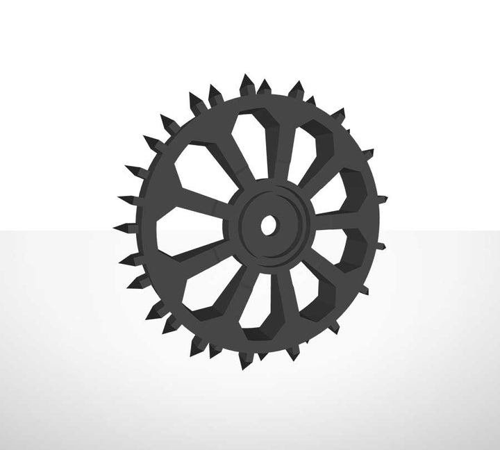 Mit Spikes ausgestattete Geländeräder für Ihren Gardena Sileno Rasenmäherroboter. Die Räder verhelfen dem Roboter zu einem besseren Halt auf unebenem und nassem Terrain.